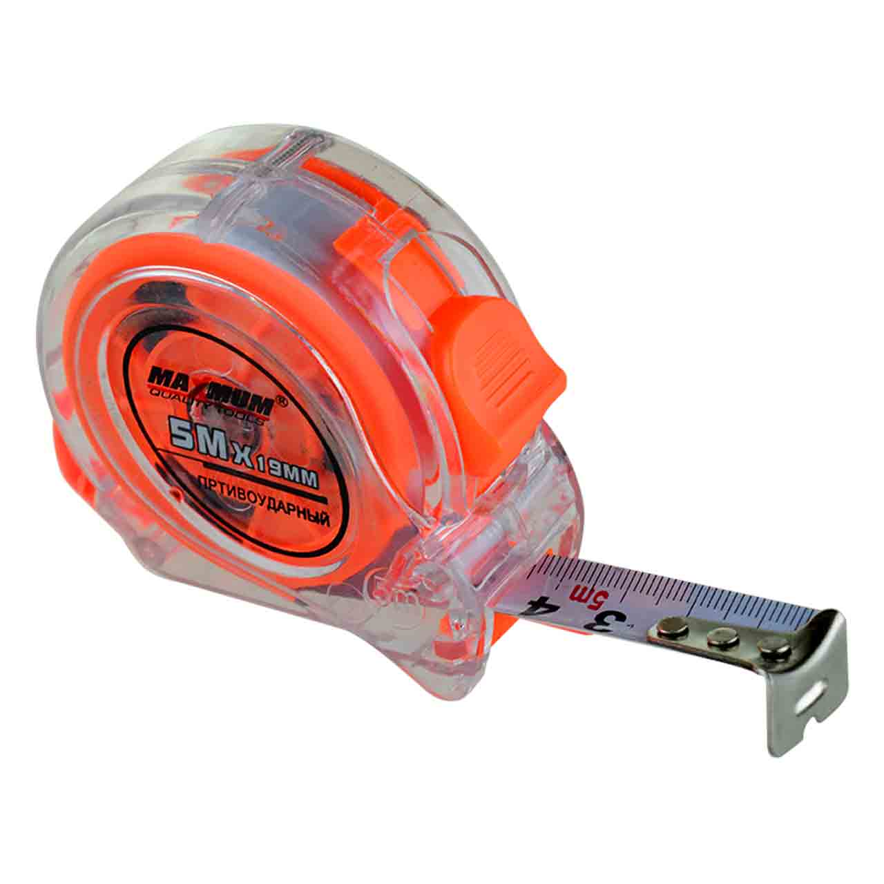 Прозрачная измерительная рулетка 5 м*19 мм от "MAXIMUM" выполнена в надежном противоударном корпусе.