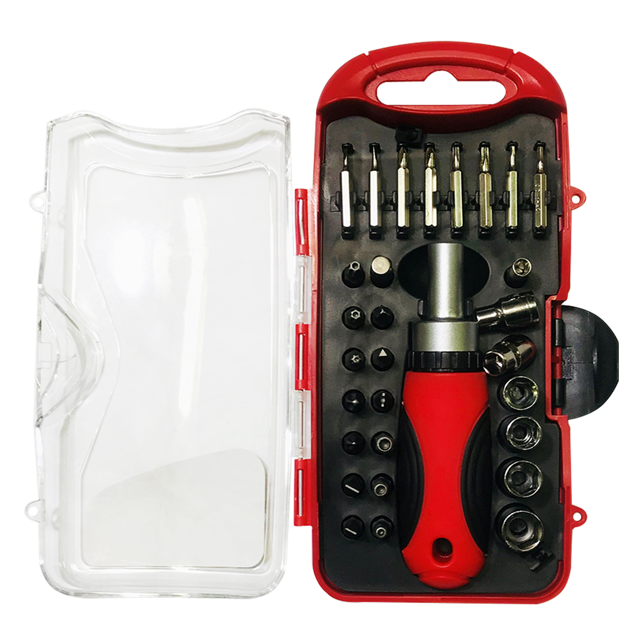 Набор инструментов в пластиковом кейсе удобный для хранения и перноски из состоит из 30 предметов от Maximum Quality Tools. Хромованадиевая сталь делает набор инструментов прочным и долговечным.