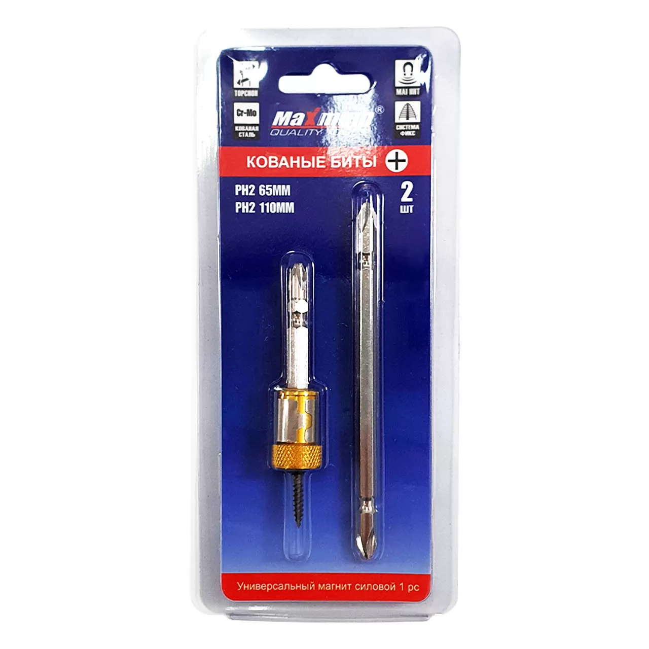 Набор бит кованых PH2, 65 мм /110 мм, с универсальным силовым магнитом 2 штуки, «MAXIMUM» предназначен для ручного и механизированного инструмента.