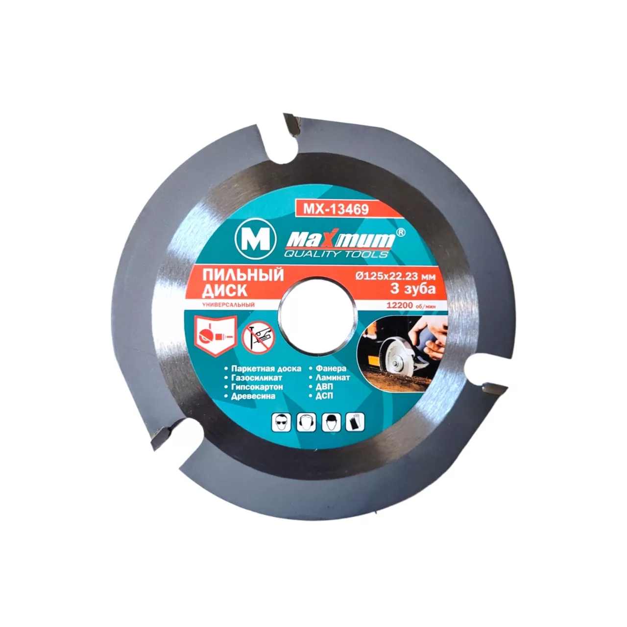 Пильный диск для УШМ универсальный 125x22.23 мм от "Maximum" имеет 3 твердосплавных зуба и предназначен для угловых шлифовальных машин и ручных резчиков. Диск применяется для ровного и чистого реза древесины, фанеры, ламината, паркетных досок, гипсокартона, ДВП, ДСП, а также выборки пазов в газосиликате.